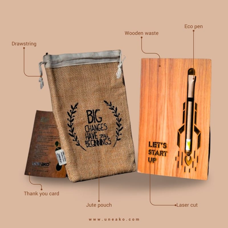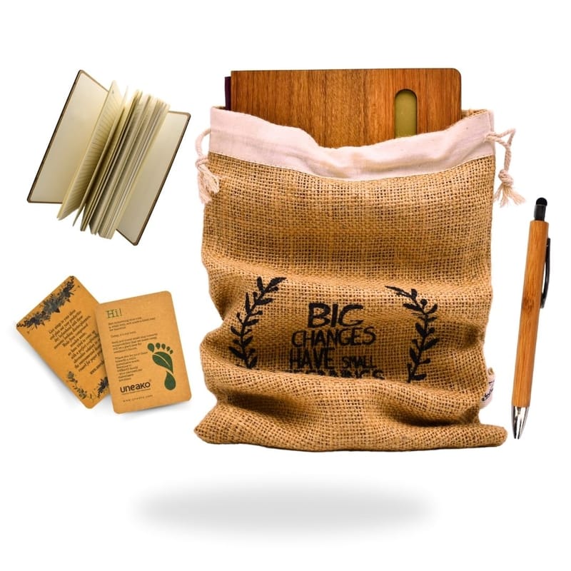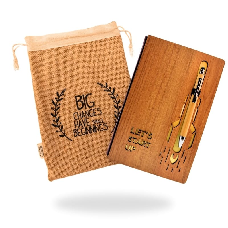 Introducing our unique notebook set, designed for those who believe in the power of ideas and creativity. This eco-friendly notebook, accompanied by a stylish pen, is perfect for capturing thoughts, dreams, and plans. Adorned with inspirational quotes, it serves as a reminder that every significant change begins with a single step.
