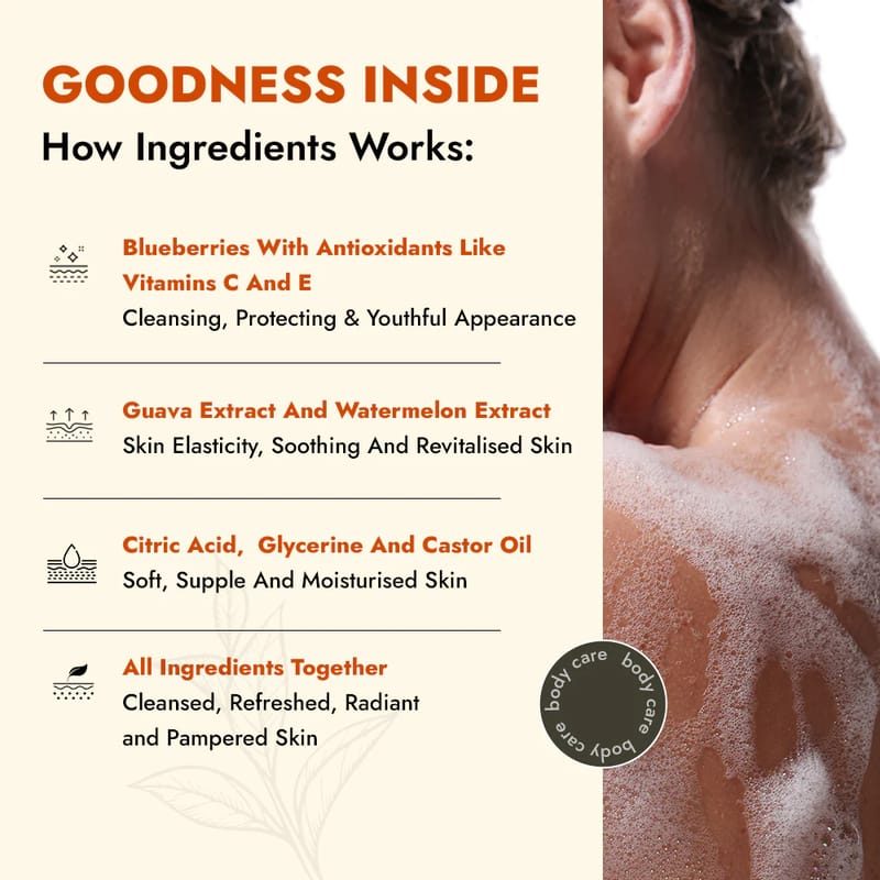 The Berries & Guava Deep Cleansing Shower Gel is a skincare product that contains fruit extracts and offers benefits for the skin. Fruits like blueberries, watermelons, and guavas are rich in antioxidants and nutrients that can aid in the repair a...