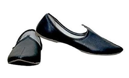High-quality, soft leather that molds to the shape of the foot, providing both comfort and durability. The design is often characterized by intricate hand-embroidered patterns, featuring colorful threads, mirrors, and beadwork.
