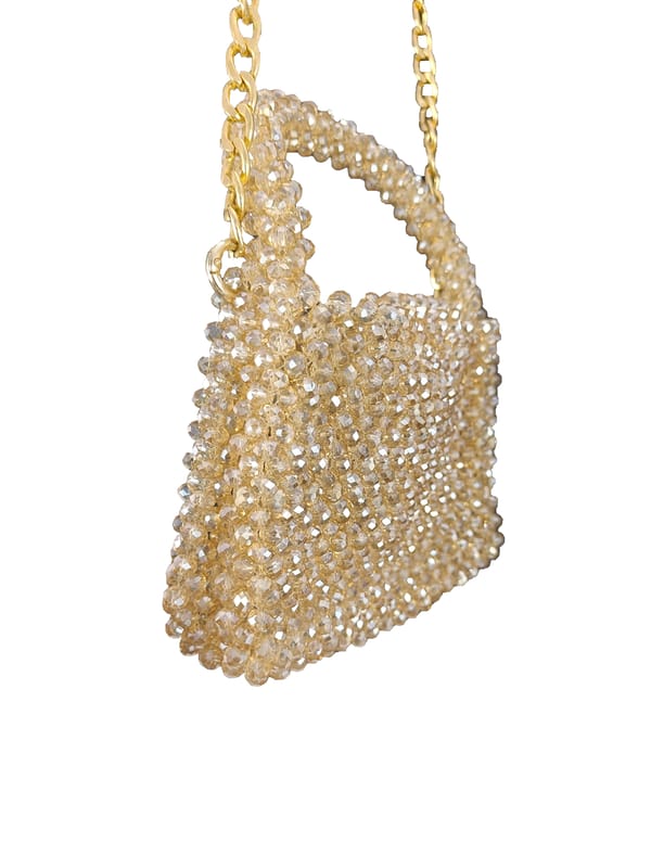 Elegant Crystal rectangle shaped medium size clutch bag handicrafted by the handicraft artisan of FHS. This clutch bag enhance the look for ladies it is party ware emblished type clutch.