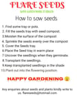 Make your Balcony/ Lawn/ Terrace a green place beside the concrete jungle we live in. After a busy working day, you and your family can enjoy some relaxing time amid the serenity of greenery. Carefully chosen by FLARE SEEDS to provide you healthy lifestyle with fresh and organic fruits and vegetables along with soothing effect on your mind.Vegetable Starter Kit includes 45 varieties of Naturally Grown and Open Pollinated seeds with high germination rate. Kit Contents:Mustard, Spinach, Coriander, Fenugreek, Red Amaranthus, Soya Dill,Onion, White Onion,Carrot, White Radish, Beetroot, Cauliflower, Broccoli, Chillies, Okra, Peas, Red Turnip, Tomato, capsicum Green, Black Beauty, Brinjal Purple Long, Cucumber, Guar Phali, Amla, Kohlrabi, Orange Carrot, Tinda, Bitter Gourd, Cowpea, Dolichos Beans,Peas, Singra, White Brinjal, Cherry Tomato , Ash Gourd, Broccoli, Cabbage, Lettuce,Long Bottle Gourd, Pumpkin, Ridge Gourd, Round Bottle Gourd, Snake Gourd, Sponge Gourd, Summer Squash, Sweet Corn and Makka. Mix Agro peat or Manure with soil (30:70), this will help in germination of seeds. Care needs to be taken to see that the soil is clean from any weed or insect. Now open the seed packet on a white sheet of paper as while opening the seeds might fall, which are not visible to naked eyes. After preparing the soil, insert the seeds into the prepared to half (0.5) inch of depth. While watering, care needs to be taken to only sprinkling water through a sprinkler or manually using your hands, do not use pipe or a mug to water for the first week, as the force of water might damage the seed germination process. Germination may take place 10-18 days, depending upon different varieties. Once the seeds grow in to seedlings, say around 3 inches, then you may transplant the seedlings to various pots or desired areas.