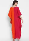 6617ae60a65d295b42524785Fuchsia Orange V-Neck Cotton Kaftan with Contrast Stitch LinesSlumber in style in our Soft Cotton Kaftans. Our Long Ankle Length Kaftans come in two styles - with Tie-up or without Tie-up. Available in solid colours, indigo and other natural hand block prints.VKS019XS
