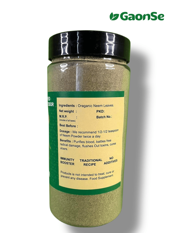 Gaon se Neem Powder is a non-medicated and organic, herbal neem powder that has been used in Ayurvedic medicine for over 4,000 years. Neem is a key ingredient in this powder and has many health benefits.