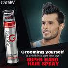 Read MoreGatsby Set & Keep Super Hard Spray is the ultimate setting power for a solid style. The fine mist evenly coats hair for a stylish and long styling hairstyle without any visible residue and a non-sticky shine effect. Further...
