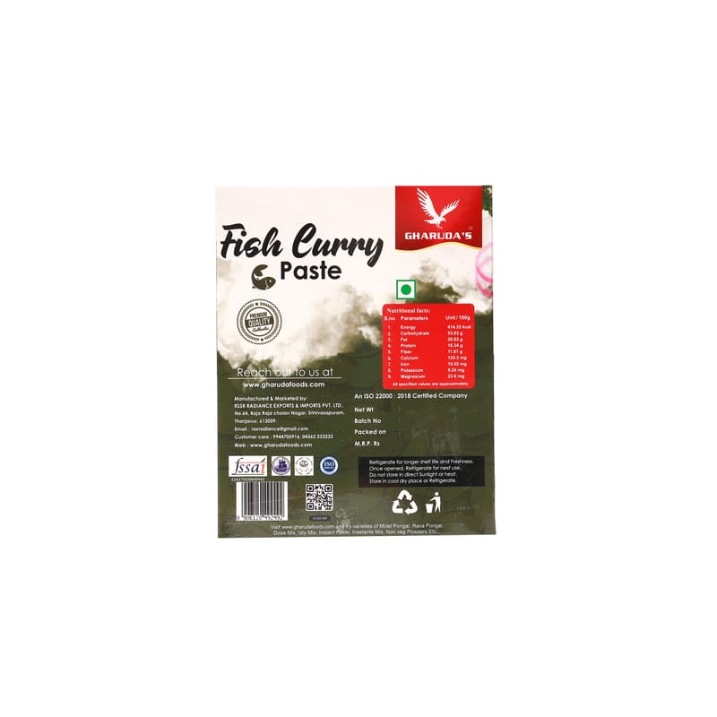 Gharuda Foods Fish Curry Gravy Mix made with spices such as pure chilli, coriander, turmeric and pepper gives your fish curry the best taste, colours and texture.