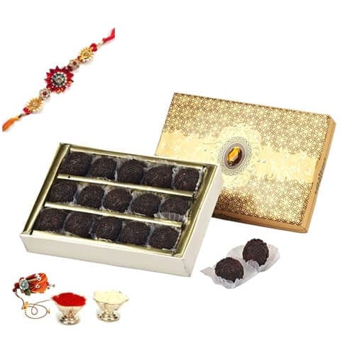 A beautiful box containing dryfruit choco ball.