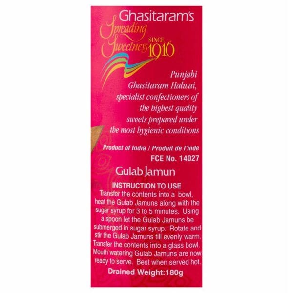 nutritional info | Ghasitarams Gulab Jamun Tin |