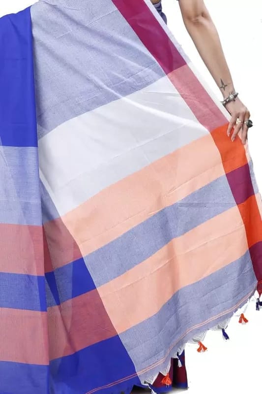 Kousiki Handloom Tant :- Pure Cotton Bengal Traditional Tant Saree . This is Classical All Body Work Handloom Product, This is Kousiki Desiging, Very beautiful look at Border, Soft and good For your Skeen. Permanent color, And also Traditional Bengal Look. Ware any Traditional Occasion or Puja . This is Very Good and classical Product. This is Handloom product at Shantipur Fulia Which is a village of West Bengal, You Can Test a village soil. It is very soft when you ware it, because it pure cotton and handloom product.