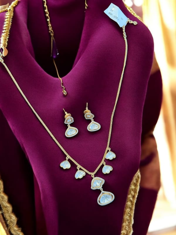 Read MoreLooking for the perfect accessory to add a touch of elegance to your next outfit? Look no further than this stunning heart-shaped necklace and earring set. This set is made with high-quality gold-plated metal and fea...