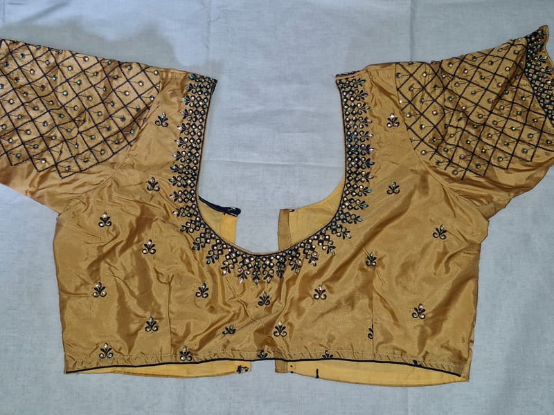 Looking for a blouse that is both stylish and traditional? Look no further than our latest collection of designer blouses! This beautiful mustard yellow blouse is made from high-quality silk and features intricate embroidery work on the sleeves...