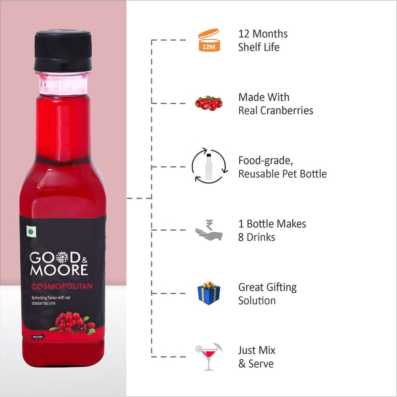 6489aa3f6b56b222d8d94e0eGOOD&MOORE Cosmopolitan Syrup | 250ml | For Cocktail, Mocktail, Sodas, Ice-teas and more | Concentrated Syrup