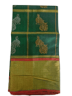 This is a beautiful green silk saree with zari woven peacock motifs. The saree is perfect for any special occasion and will make you stand out from the crowd. The rich green color is complemented by the intricate zari work, which adds a touch o...
