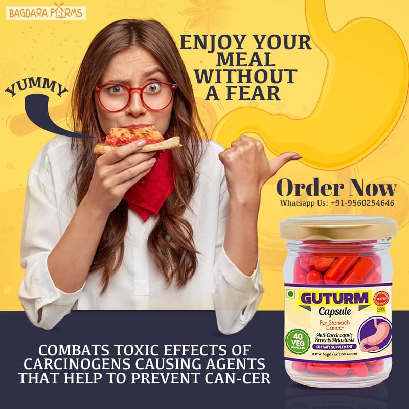 Guturm Capsule is a path-breaking, incredibly healthy and an organic product from Bagdara Farms, which has been curated to prevent stomach cancer naturally. Rich in the major phytochemical, Curcumin, Guturm Capsule inhibits proliferation of the stomach cancer cells, with its unlimited medicinal & pharmacological properties. Therefore, Guturm Capsule is a novel therapeutic strategy to inhibit stomach cancer cell growth. Guturm Capsule in many ways is reassurance that Mother Nature still has a lot to offer us and enhance our health, without causing any side effects or chemical reaction.