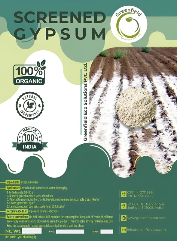 Gypsum is a naturally occurring pH neutral mineral. Screened gypsum is a soluble source of essential plant nutrients, calcium and sulphur, and improves overall plant growth, quality of produce and crop production. The screened gypsum also preve...