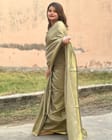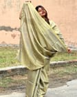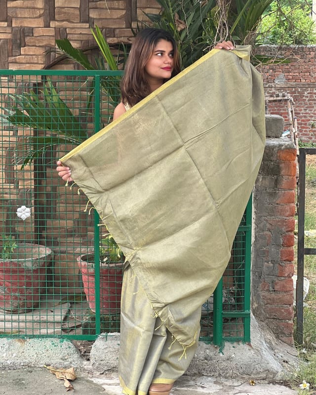 Product Specification : Length: 6.3 meters (With Blouse) Width: 44 Inches Fabric: Pure Tissue Linen Hand Dyed Blouse Piece: Available Color hues may slightly vary from that which appears in the image due to different screens and displays In case o...