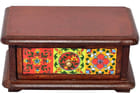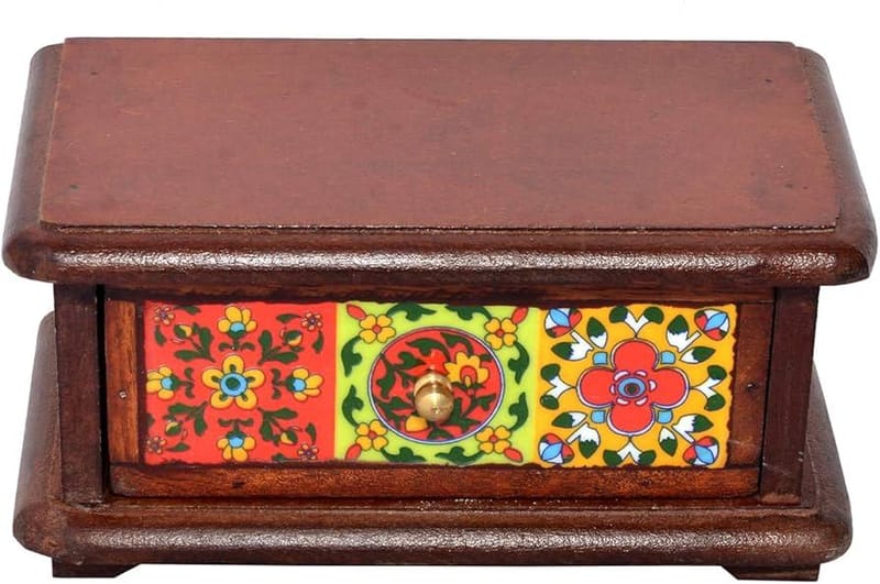 This is a beautiful handcrafted Blue Pottery Wooden Box. It is made of high-quality wood and features intricate blue pottery designs on the front. The box is perfect for storing small items such as jewelry, coins, or keys. It would make a great gift for any occasion.