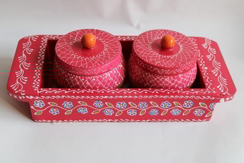 Looking for a unique and stylish way to store your spices? Look no further than our Wooden Spice Box! This beautiful box is handcrafted from high-quality wood and features a vibrant, hand-painted design. It includes two removable containers, pe...