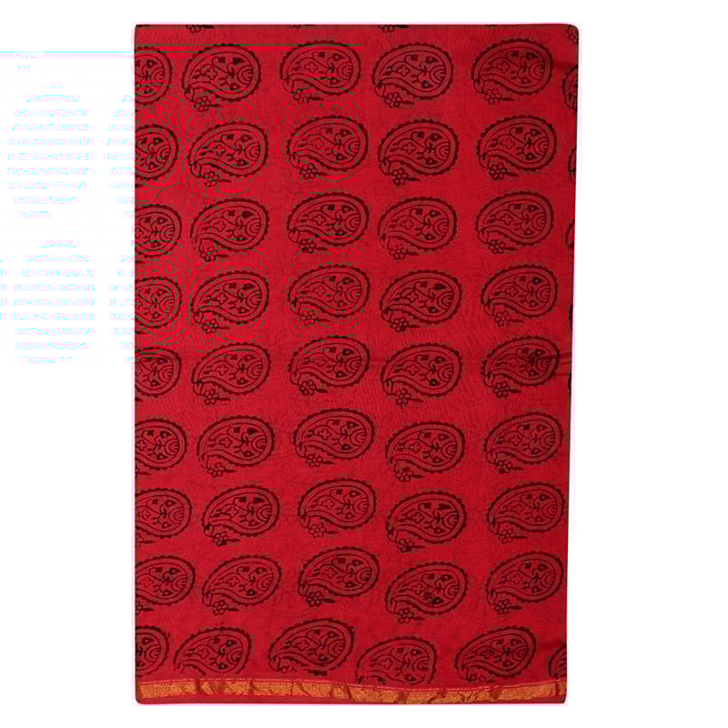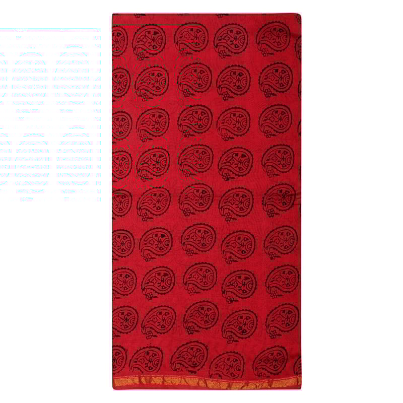 HANDLOOM CHANDERI 03 PCS BAGH PRINTED SUIT (SILK+COTTON) WITH PIPING ZARI BORDER (COLOR: PINK AND BLACK BLOCK – DUPTTA & BOTTOM, PINK ON BLACK BLOCK – TOP )