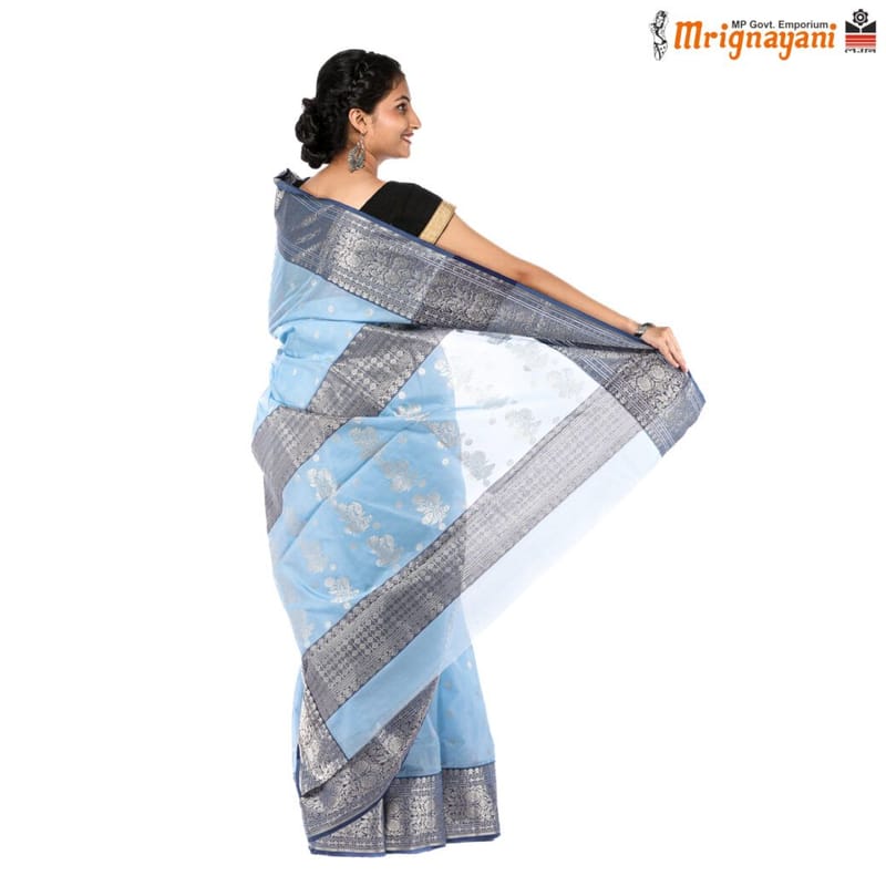 Read MoreHANDLOOM CHANDERI SILK SAREE WITH BLOUSE, SILVER NAKSHI ZARI CONTRAST BOARDER AND ZARI BUTI ON ALL OVER SAREE AND HEAVY ZARI WORK ON PALLA . WEDDING AND PARTY WEAR SAREE