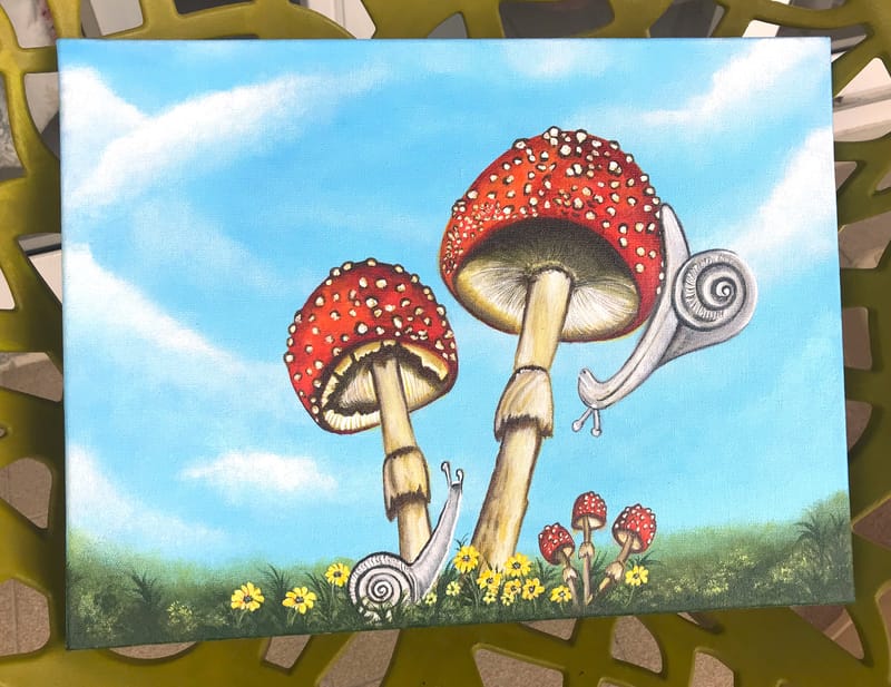 Read MoreA realistic looking Nature Art of "Wild Mushrooms and Snails" with a bright sunny day as background.