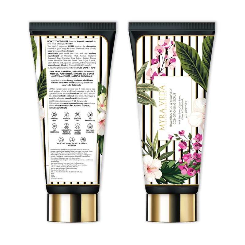 Our Hawaiian Mud and Seaweed Scrub, an intensely nourishing formula, bestows deep cleansing exfoliation leaving the skin feeling revitalised, softer, smoother, brighter, and generously glowing.