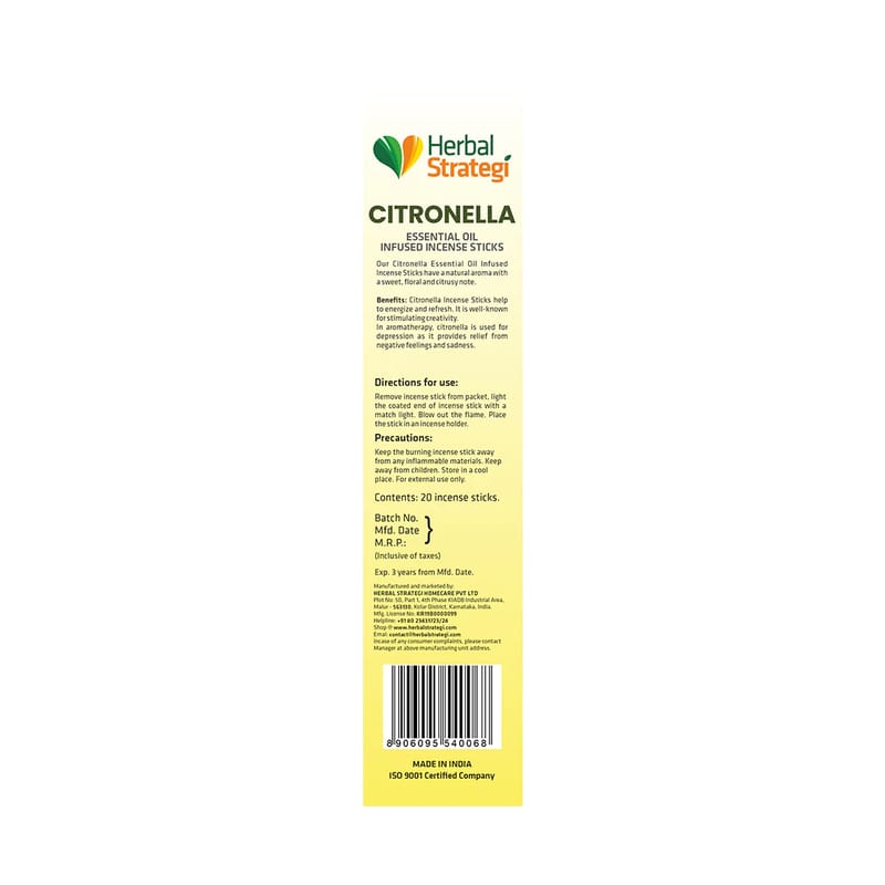 The Herbal Strategi?s Citronella Incense Sticks is the one-stop solution for bad odors and gives you that fresh breath of air that you have been looking for a long time.
