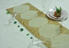 HM Creations Treasures White and Gold Table Runner, Beaded Table Runner, Designer Table Topper 13X36 Inches
