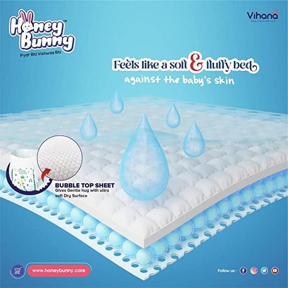 Honey Bunny Everyday Baby Pants Dipers with Wetness Indicator, Silky Soft - Bubble sheet, medium pack of 54