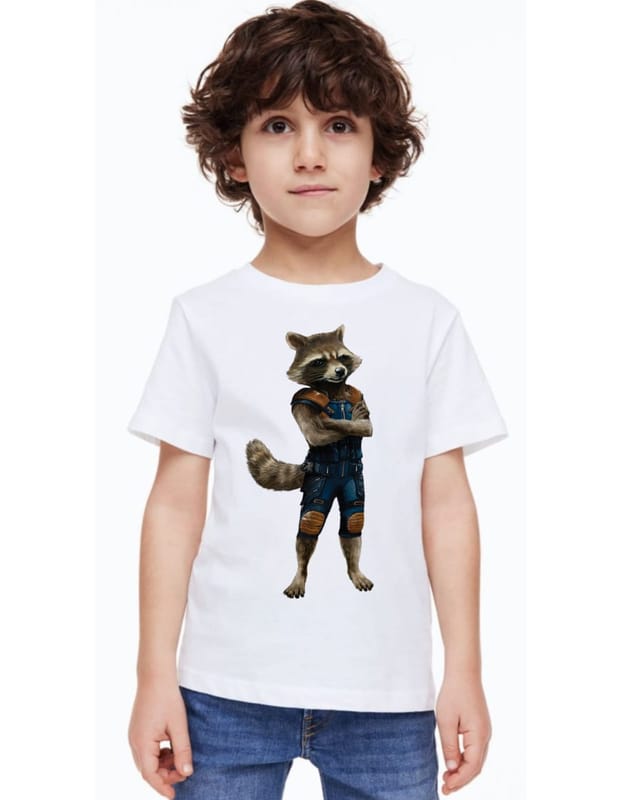Hplus Junior Boys Printed Tshirt Marvel Rocket.