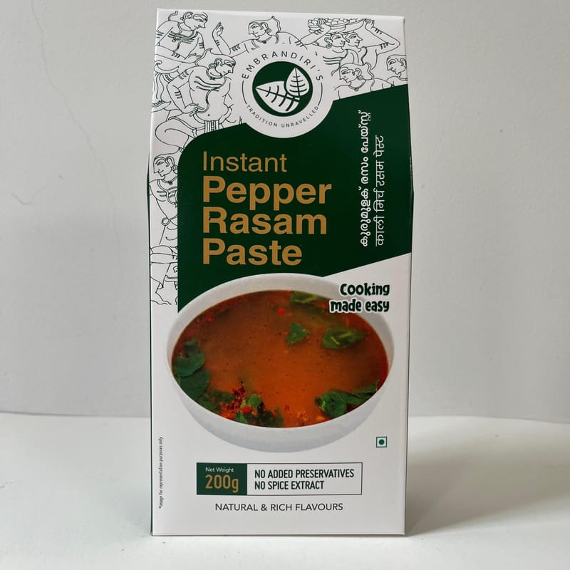 Read MoreEmbrandiri’s Instant Pepper Rasam Paste offers a convenient 2-step solution for daily consumption, as it promotes digestion by incorporating black pepper and garlic. Ideal for post-meal enjoyment, these ing...