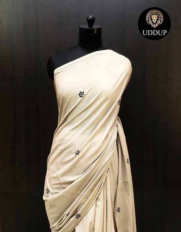The subtle yellow tint gives any creation just the right amount of elegance. Likewise, this saree in a royal ivory shade will add elegance and royalness to your wardrobe. This saree features centuries-old traditional Hand-Block prints of star motifs in vibrant black, and this saree is the epitome of classic elegance. It is a must-have in every woman’s wardrobe who wishes to exude an aura of royalty.