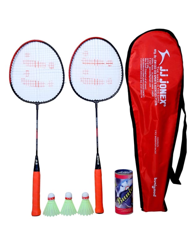 JJ JONEX BUNIYAD Badminton Set with 3 Piece Plastic Shuttlecock (Multicolour) (MYC)