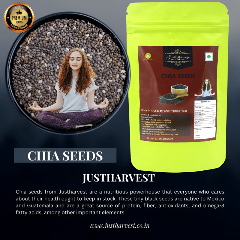 Chia seeds from Justharvest are a nutritious powerhouse that everyone who cares about their health ought to keep in stock. These tiny black seeds are native to Mexico and Guatemala and are a great source of protein, fiber, antioxidants, and ome...