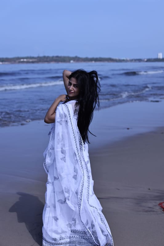 Our Kota range is one of a kind. Like the summer breeze on an ethereal lake, it is woven by the karigars of Kaithoon and interlaced with Sanganeri block printing work on the border and body to create this chic new drape story,
