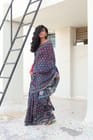 Fabric : Silk cotton saree handblock printed with Pharad technique with Natural Indigo dye.