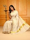 Kerala Cream Gold Jari Weaving Saree Occasion : Casual, Function Fabric : Gold Jari Weaving Saree Colour : Cream with Copper Saree Size : 6.2m Set content : Comes with blouse Piece (in running material) Fabric: Traditionally, Kasavu sarees are ...