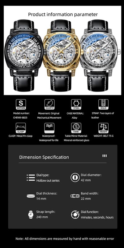 5. Genuine Leather Strap: The genuine leather strap not only enhances comfort but also adds a touch of luxury. It's designed to withstand daily wear and elevate your overall look.