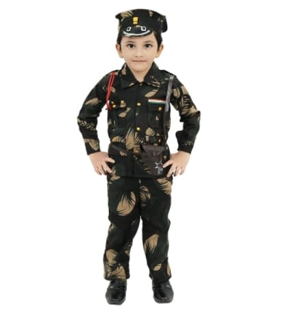 Kids Army Fancy Dress Costume with shirt, pant, gun, cover, wistle.