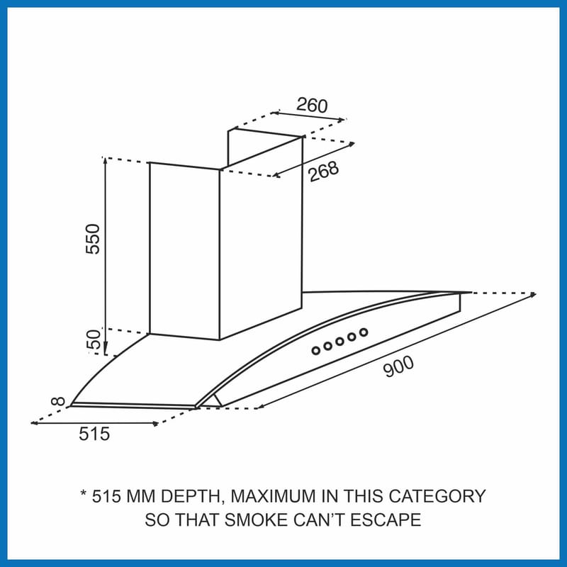The Glen 6071 90cm Designer Chimney adds a sleek touch to your modern kitchen. It comes with 2 stainless steel baffle filters which are easy to clean and lasts a lifetime. The 180w powerful 100% copper winding motor wit...