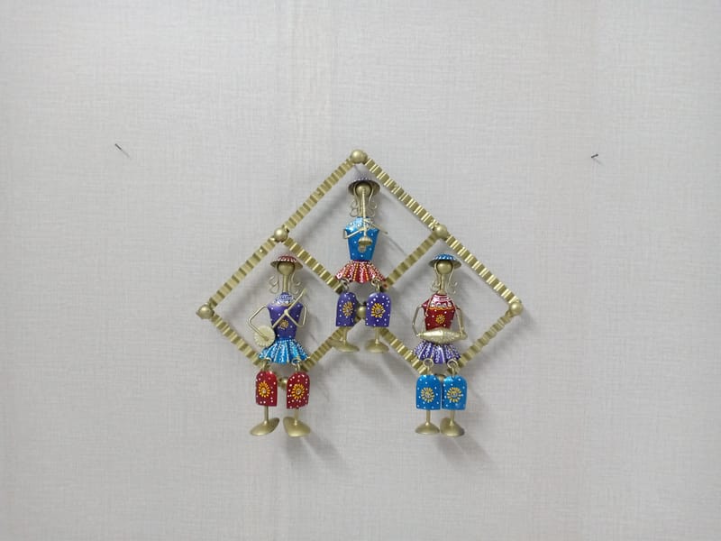 Cultural Harmony: This metal wall art celebrates the cultural heritage of India by depicting three musicians in a harmonious arrangement. Each lady idol is a testament to the beauty and grace inherent in Indian traditional music, capturing the essence of a rich cultural tapestry.