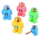 Double Blade Astronaut Look pencil sharpener with mini erasers on top.