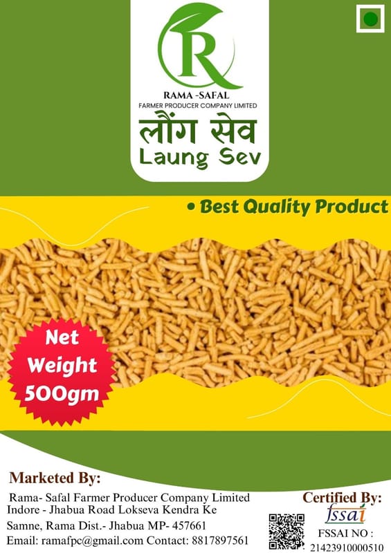 | Additive info | Mouth Watering Laung Sev, Speciality for Malwa Region Shelf life - 6 Months Ingredients - Gram pulse flour, edible vegetable oil, black pepper, Cloves, ... |