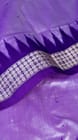 The sharp purple triangles on the border create a striking contrast. The captivating pallu steals the show with its intricate design and vibrant hues, a perfect blend of simple and grand.