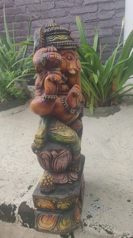 This is a beautiful and unique hand-crafted wooden statue of Lord Ganesha, the Hindu god of wisdom and prosperity. The statue is made from a single piece of wood and is intricately carved with great detail. Lord Ganesha is depicted sitting on a...