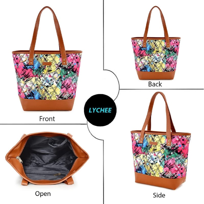 Bring home this tote handbag from the house of lychee Bags and enhance your accessory collection. Crafted from premium quality printed canvas, it is easy to maintain. In addition to that, it features a spacious main compartment that offers adequate space for you to store your essentials in place.This Tote Bag is a dream come true for every shopaholic.