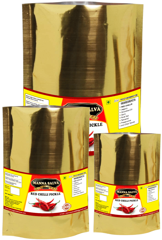 Manna Salva Red Chilli Pickle is a delicious and spicy pickle made with fresh red chilies, jaggery, groundnut oil, garlic, rock salt, tamarind, and other spices. It is a great condiment to add a kick of heat to your meals.