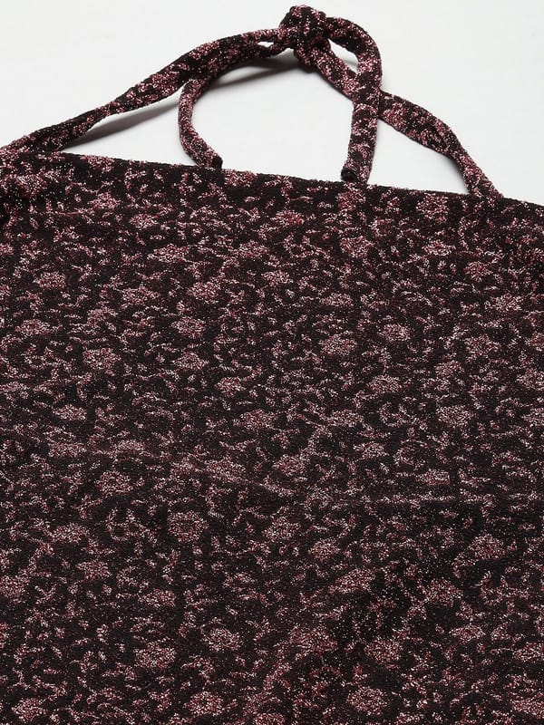 Maroon Embellished Halter Neck Jacquard Sheath Dress