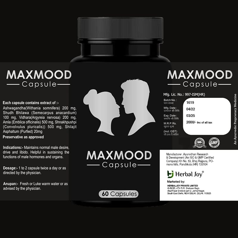 Maxmood Capsules help Maintain normal male desire, drive, and libido. Helpful in sustaining the functions of male hormones and organs.