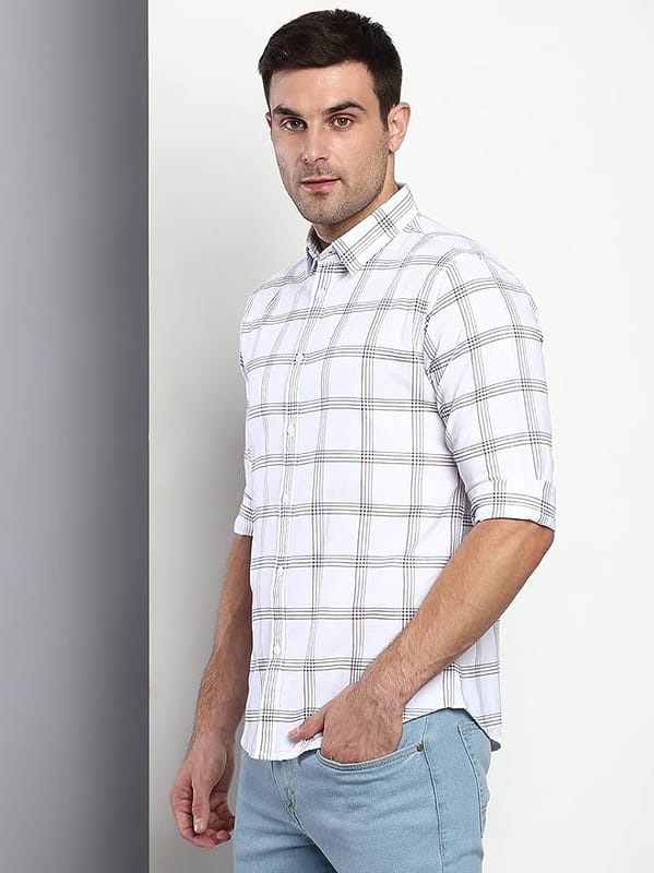 64e9bccbd829a8daaf108833Men's Checkered Slim Fit Cotton Casual Shirt with Spread Collar & Full Sleeves (White)