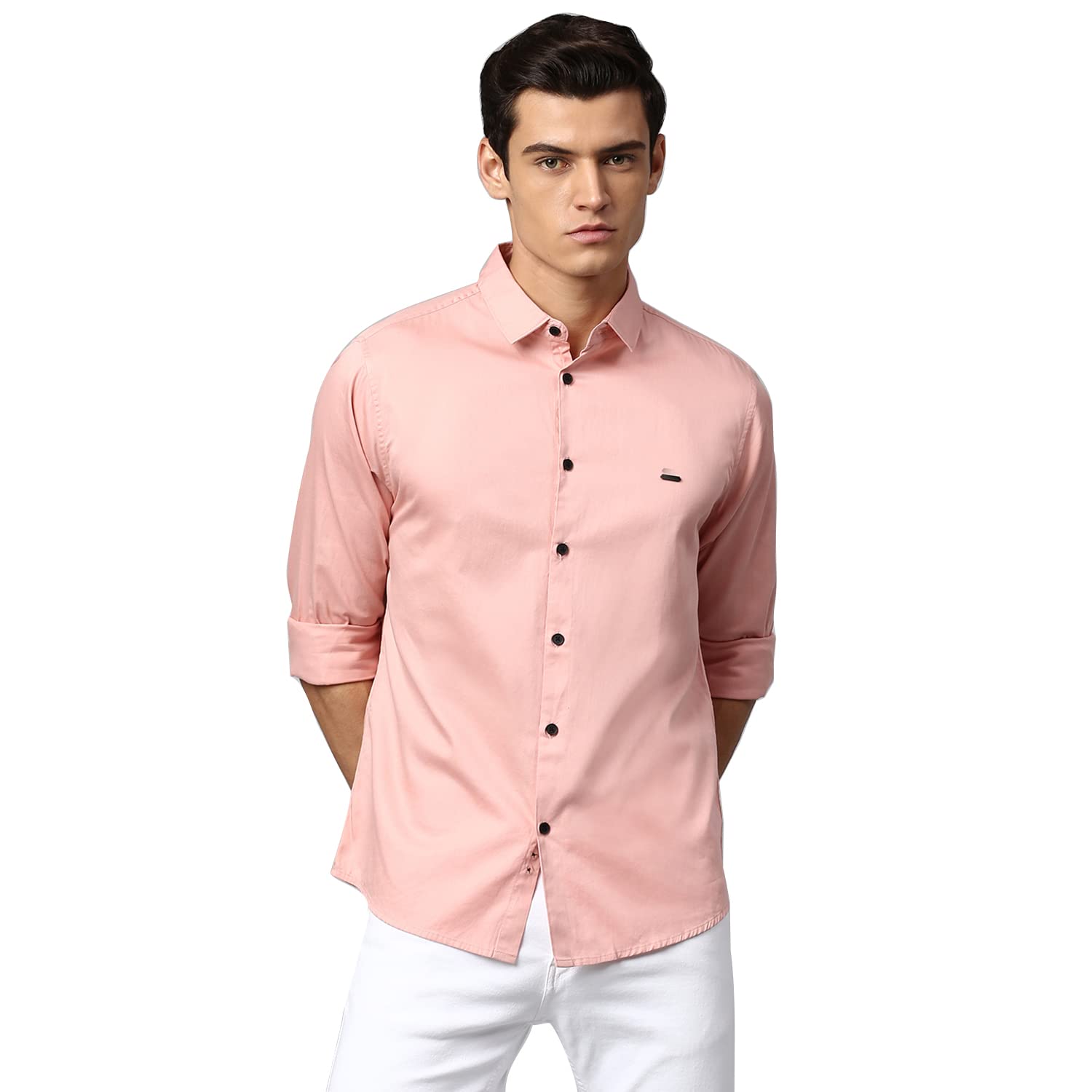64e9b36896e04eefc4a0aa52Men's Cotton Solid Slim Fit Casual Shirt with Pocket, Full Sleeve Shirt for Formal & Casual Wear (Pink)